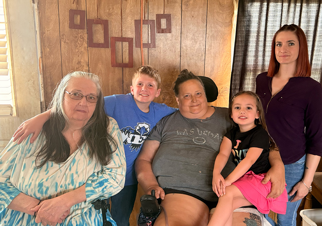 But now, as the years have passed, Lane has become dependent on a walker to move around, she suffers from COPD requiring ongoing oxygen treatment, and she doesn’t get out much. She was hospitalized last year, suffering from a hernia, but she’s home now and her helping goes on. She lives with her daughter Dusty, 46, who suffers from Spina Bifida. Dusty is confined to a wheelchair, has kidney issues that require dialysis, and lost part of one leg not too long ago. She has skin lesions that require daily care.